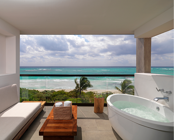 Imagine opening the door to your own slice of Caribbean paradise — the Alcoba Ocean Front at UNICO 20°87° is where the turquoise sea and tropical breeze become part of your experience. With either one King bed (ideal for couples) or two Queen beds (perfect for friends or families), this luminous and carefully curated room allows you to wake up just steps from the shoreline